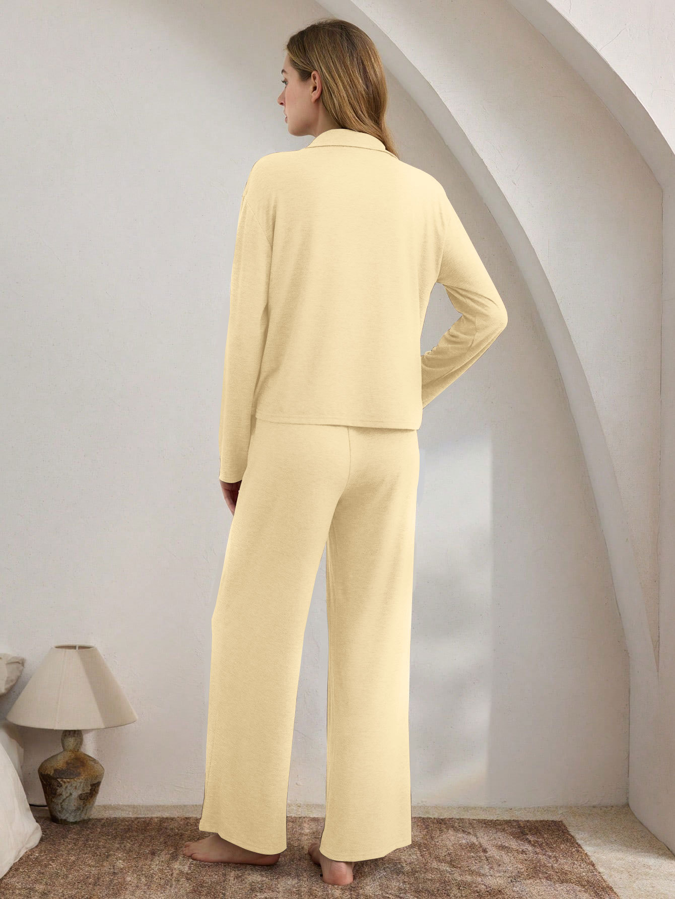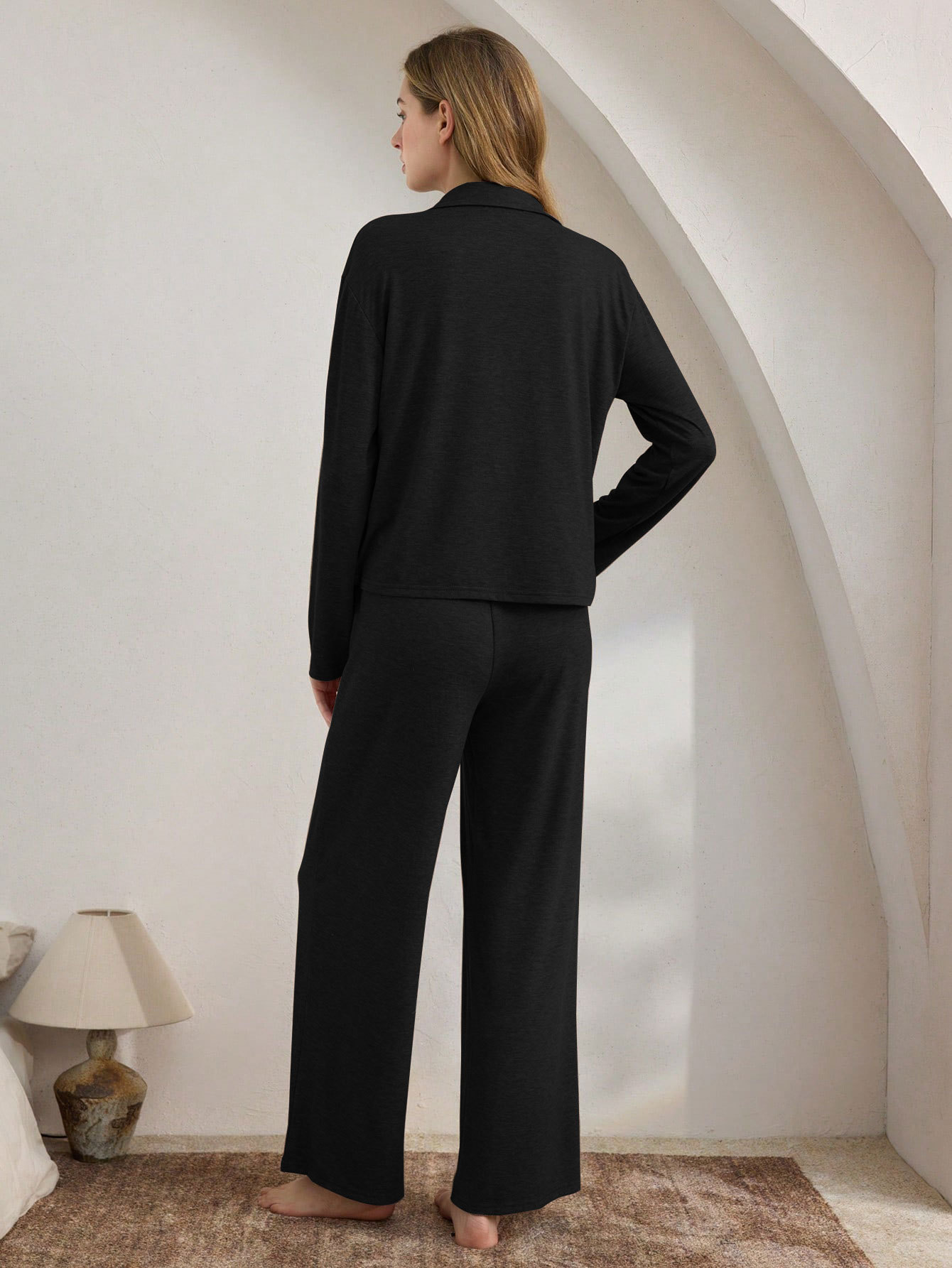Casual Cardigan Long-sleeve Top And Loose-fitting Pants Pajama Set